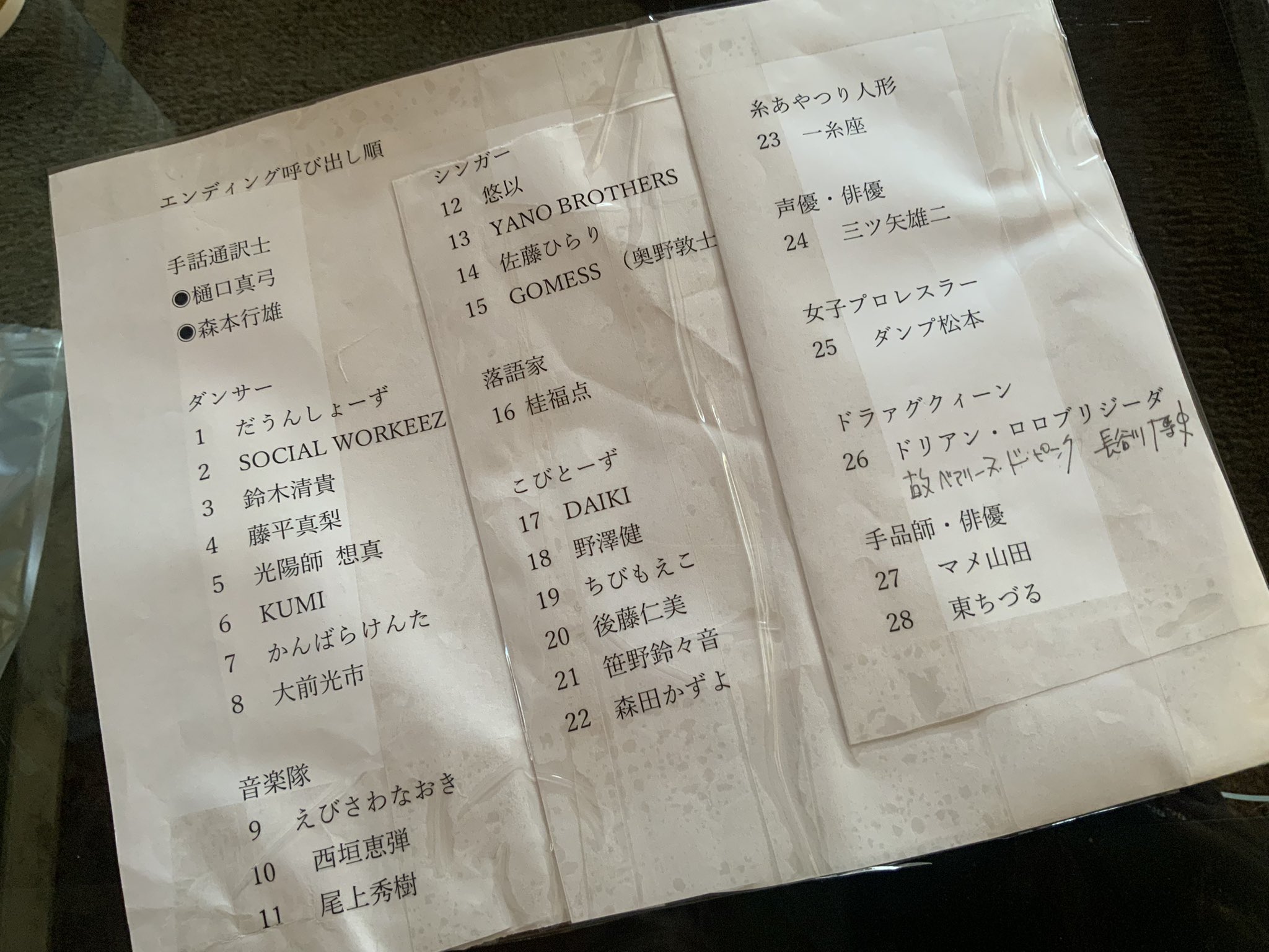 ・ダウン症のパフォーマーの人の名前が呼ばれない